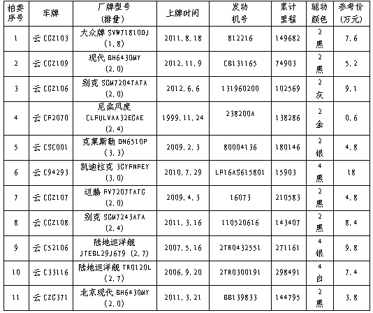 經(jīng)水富縣人民政府批準(zhǔn),公開(kāi)拍賣(mài)水富縣國(guó)有資產(chǎn)經(jīng)營(yíng)有限公司公車(chē)11輛。以輛為單位拍賣(mài)。相關(guān)事項(xiàng)公告如下: