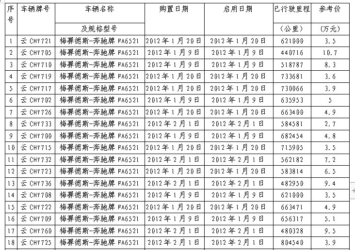 根據(jù)中標(biāo)通知,受云南昭通交通運(yùn)輸集團(tuán)有限責(zé)任公司委托:對(duì)外招商、公開拍賣31輛商務(wù)客運(yùn)國(guó)有車輛所有權(quán)(不含運(yùn)營(yíng)權(quán))。以輛為單位拍賣。增價(jià)拍賣,價(jià)高者得。相關(guān)事項(xiàng)公告如下: