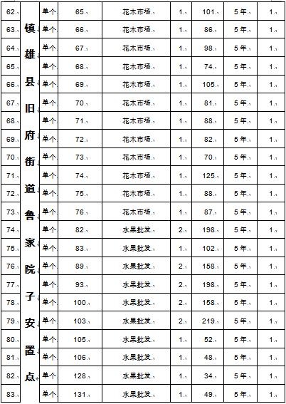 十二、拍租會地點:鎮(zhèn)雄縣燈光球場(鎮(zhèn)雄縣烏峰鎮(zhèn)五一路48-49號)。